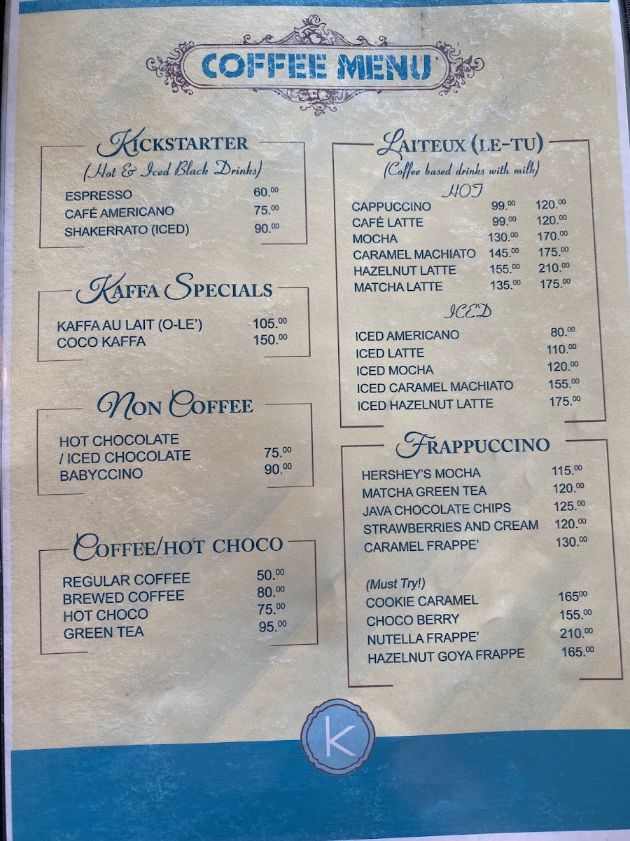 At The Kaffa Haus Menu, you’re in for a treat that celebrates the rich flavors of both local and international cuisine. Located on Sacred Heart of Jesus Avenue in Roxas City, Capiz, this cozy spot has something to offer everyone, whether you're craving a comforting Filipino dish or an exciting new flavor combination. From savory breakfasts to mouthwatering snacks, the menu at The Kaffa Haus brings together hearty meals that are perfect for any time of the day.